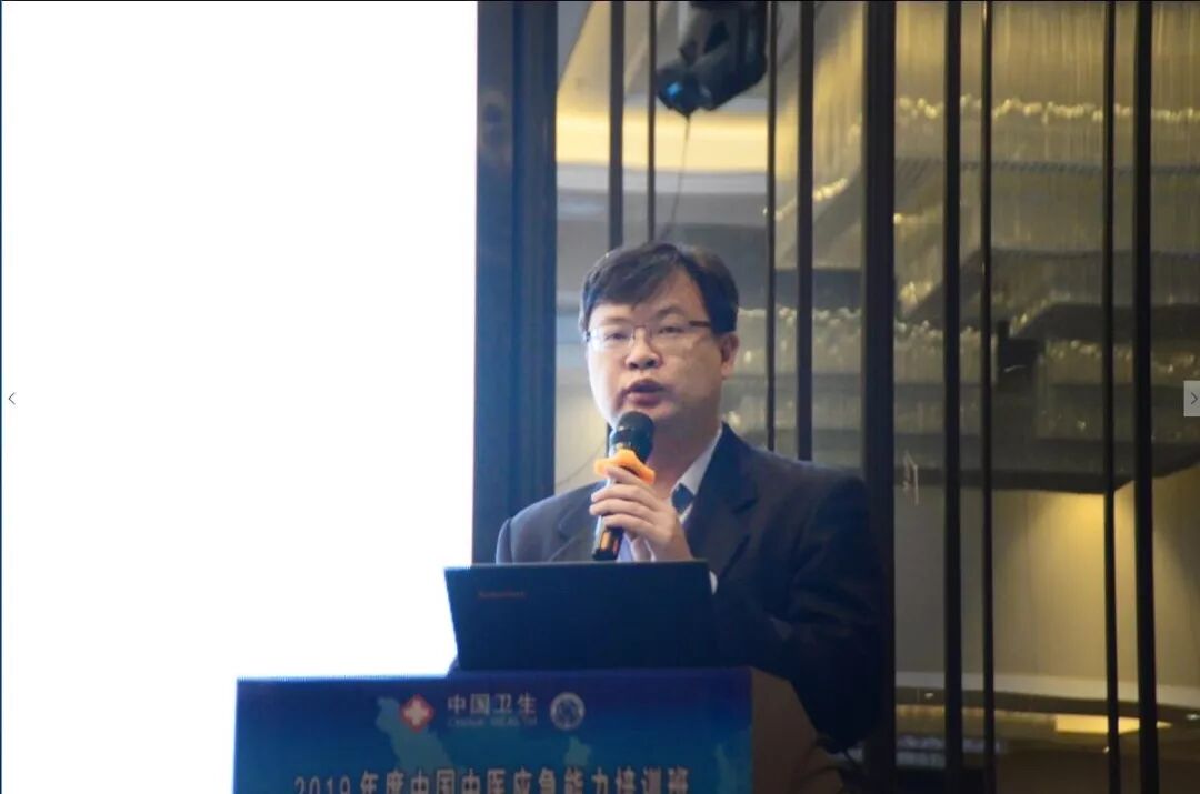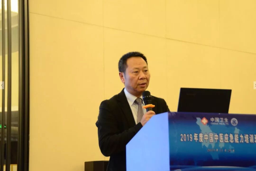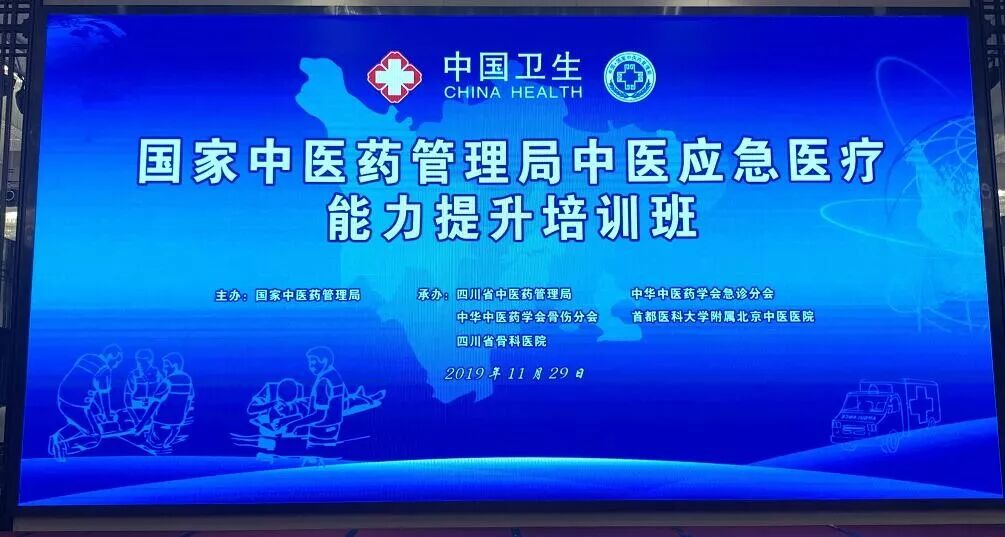 2019年11月28至30日,2019年度中国中医应急能力培训班暨国家中医应急医疗队应急演练在四川省新津县顺利举行。本次培训班和应急演练由国家中医药管理局主办,四川省中医药管理局、中华中医药学会急诊分会、中华中医药学会骨伤分会、首都医科大学附属北京中医医院、四川省骨科医院联合承办。国家中医药管理局医政司巡视员孟庆彬、四川省中医药管理局党组成员、副局长杨正春、医政处处长赵忠明、首都医科大学北京市中医院院长刘清泉、四川省骨科医院院长沈海等领导出席。